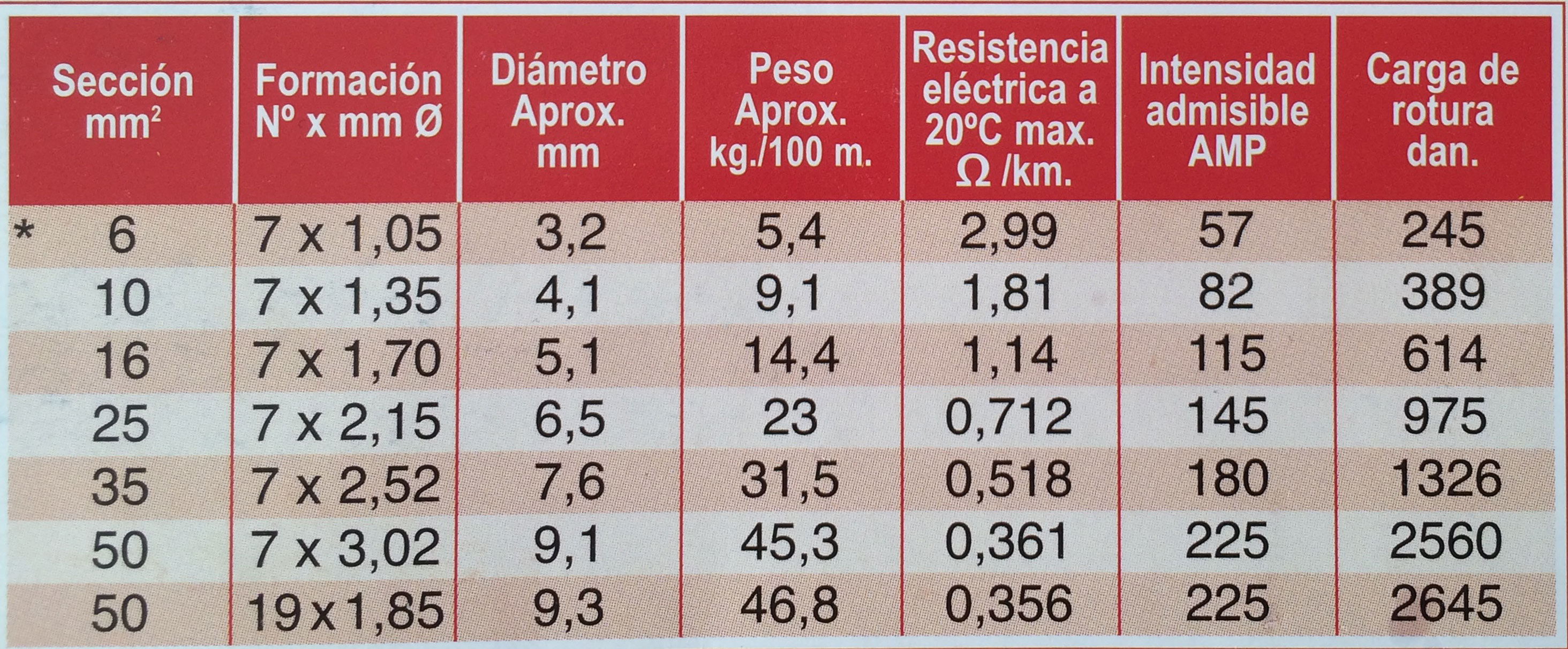 Formados por una cuerda de cobre electrolítico duro, cableado en sentidos alternados.